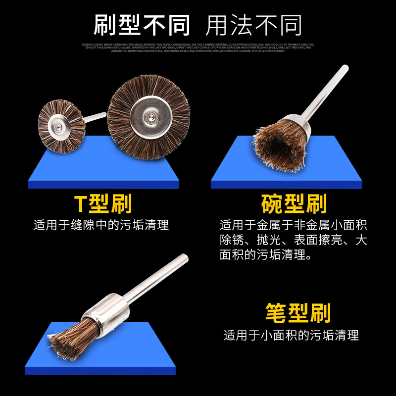 COPPER WIRE small T-type brush(25MM*3MM) COPPER WIRE small BOWL brush(15MM*3MM) Copper wire pen brush (8MM*3MM) STEEL WIRE small T-type brush(25MM*3M