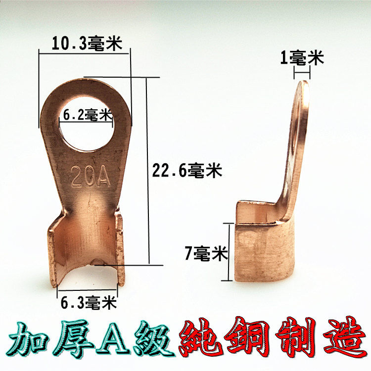 Inverter head terminal grounding piece copper terminal open nose 20A copper terminal connector wire connector