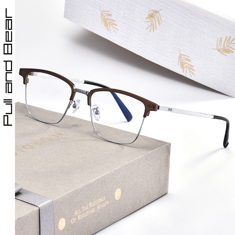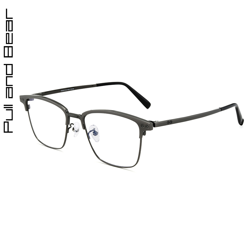 Pure Titanium Myopia Eyeglasses Men's Degree Finished Full Half Frame Eye Frame Male Large Face Anti Color Change Blu-ray