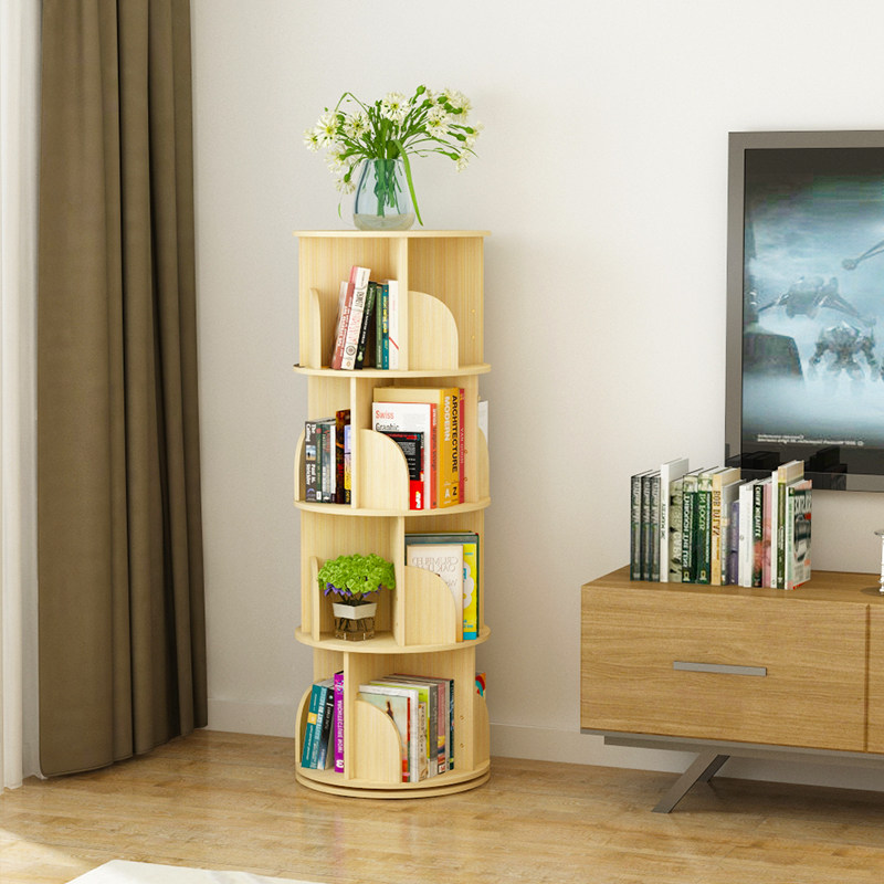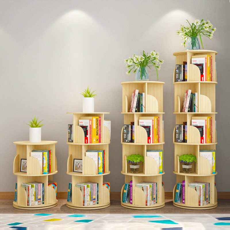 Solid wood 360 degree rotating bookshelf storage bookcase Children's small bookcase Simple floor-to-ceiling corner bookcase shelf