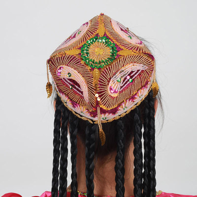 Xinjiang handmade flower hat Uyghur hat dance hat performance hat high-grade beaded square hat ladies children's hat