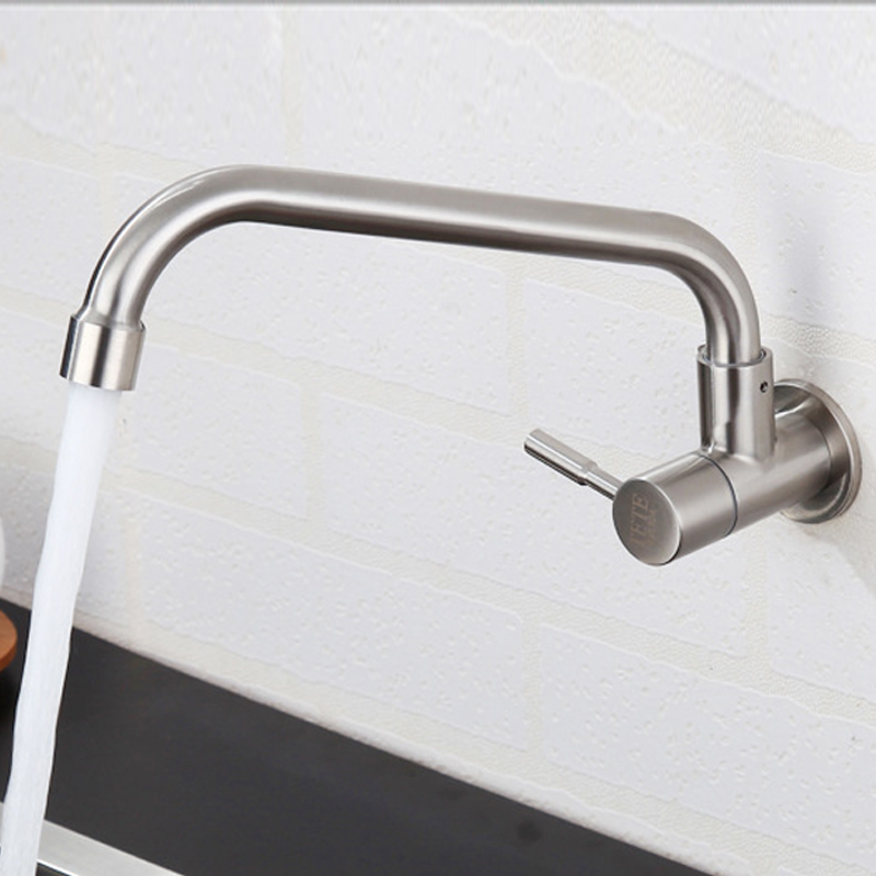 Kitchen sink in-wall single cold water faucet 304 stainless steel sink dish washer wall-mounted universal rotating faucet
