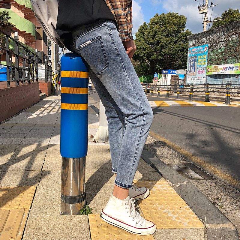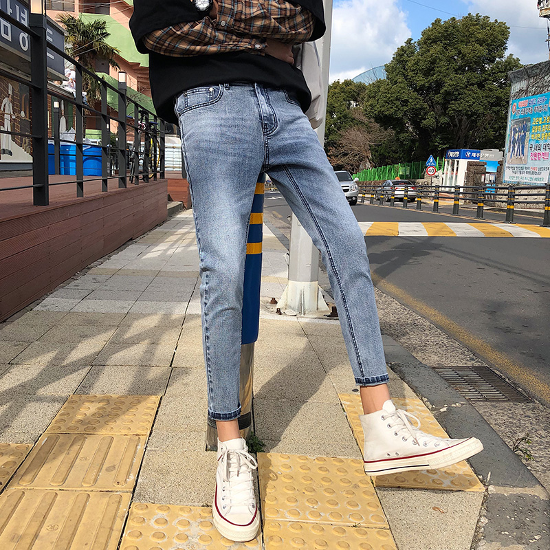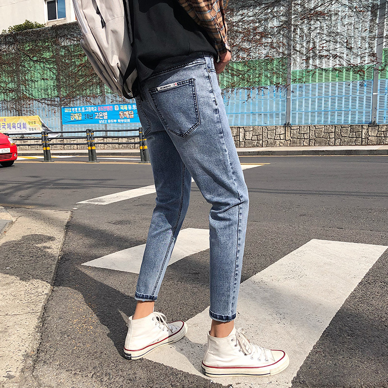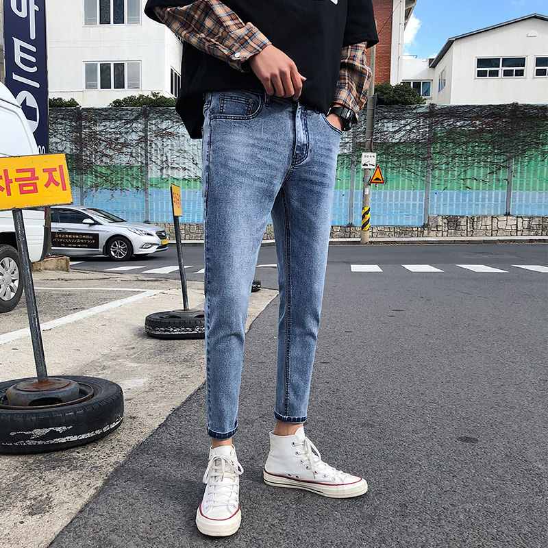 Blue jeans men's cropped tide brand slim small foot autumn pants Korean trend tight versatile 9 points men's pants