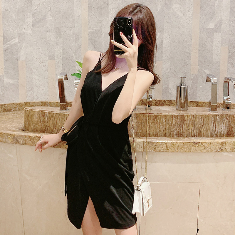Gagga's new sexy V collar back evening dress Birthday Party Foreign Dress Mid-Party Foreign Dress Short Dress