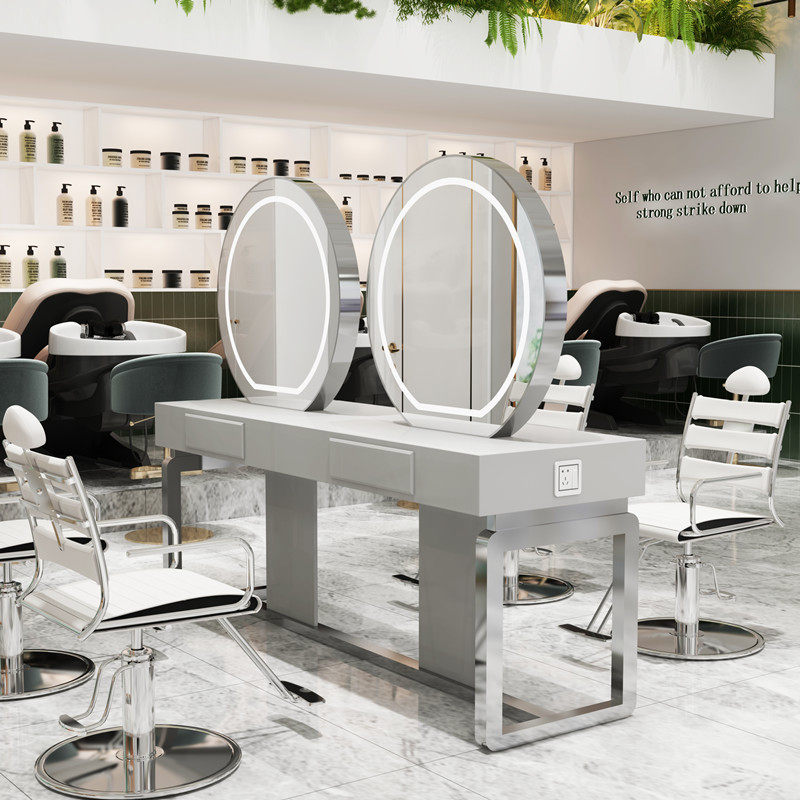 Hair salon mirror table Li Kun shop mirror special table hair salon ironing single-sided double-sided mirror table with lamp photo studio dressing table