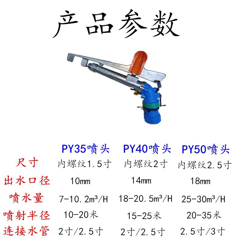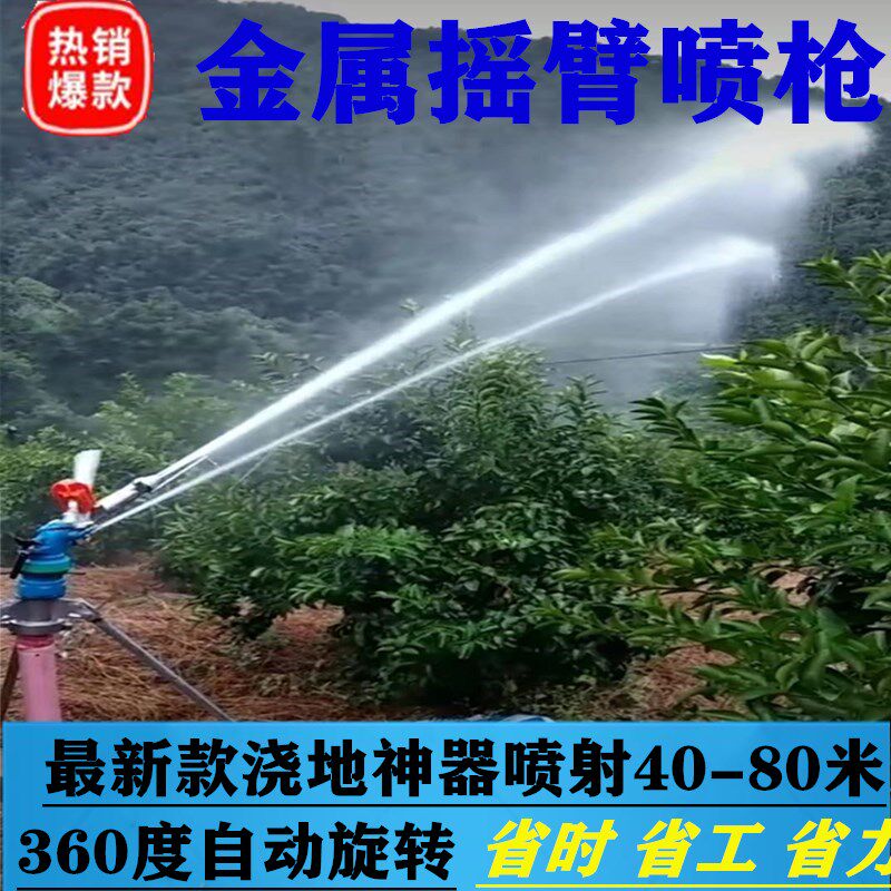 Agricultural irrigation nozzle high pressure watering artifact automatic rotation metal rock arm spray gun spray and dust removal equipment