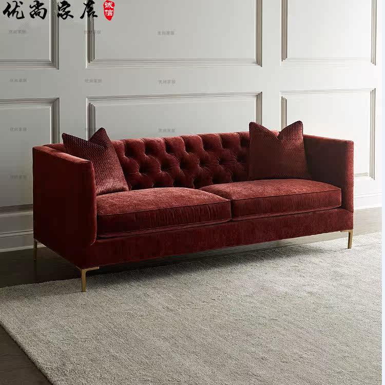 Hong Kong-style light luxury modern velvet clothing store photography studio villa living room beauty salon designer homestay three-person sofa