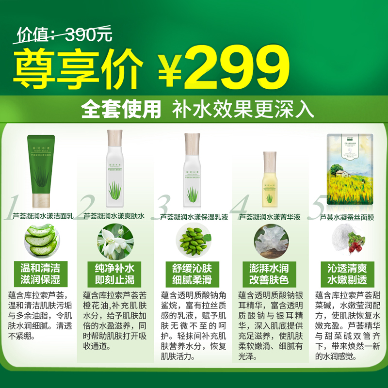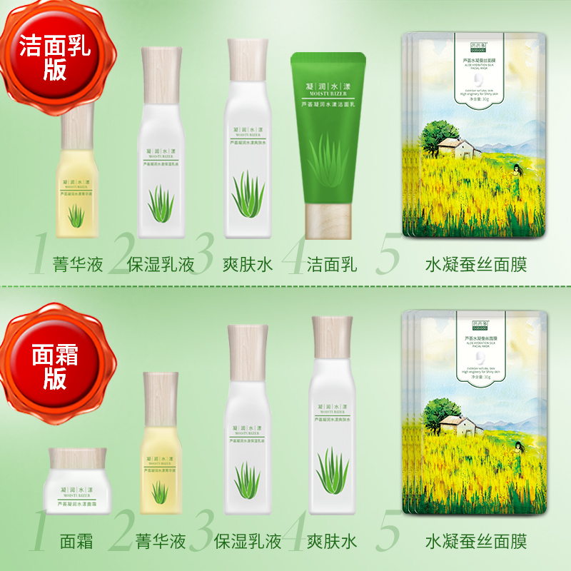 Barbados Aloe Vera Moisturizing Set Box Facial Cleanser Cream Essence Serum Skin Care Set Monopoly Counter