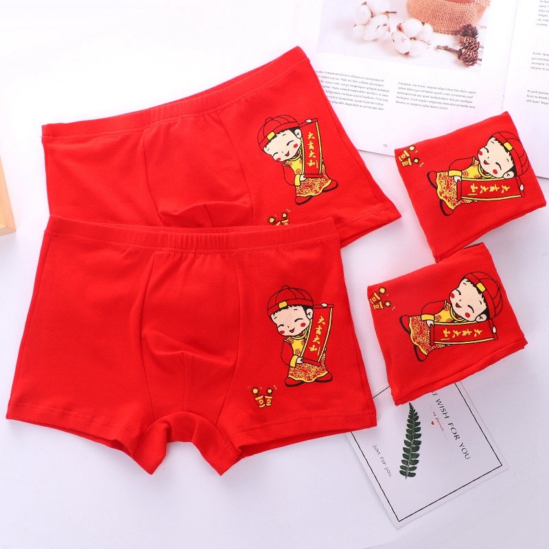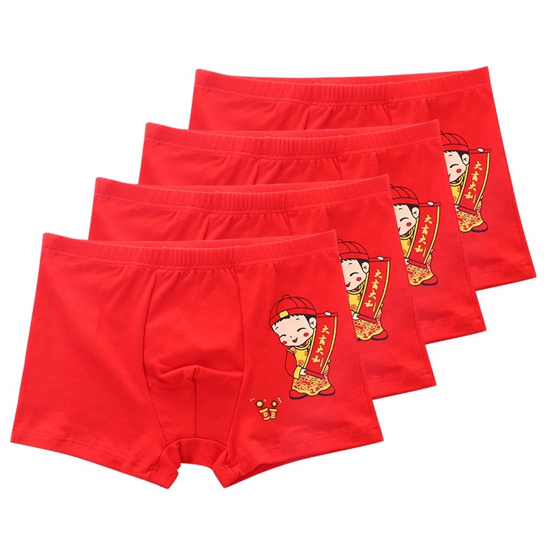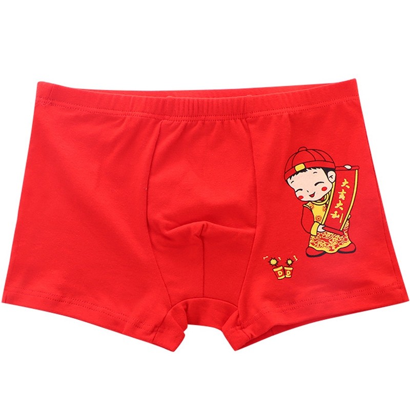 Children's red underwear men's boxer pure cotton mid-waist natal middle-aged big boy cartoon boy boxer shorts underpants