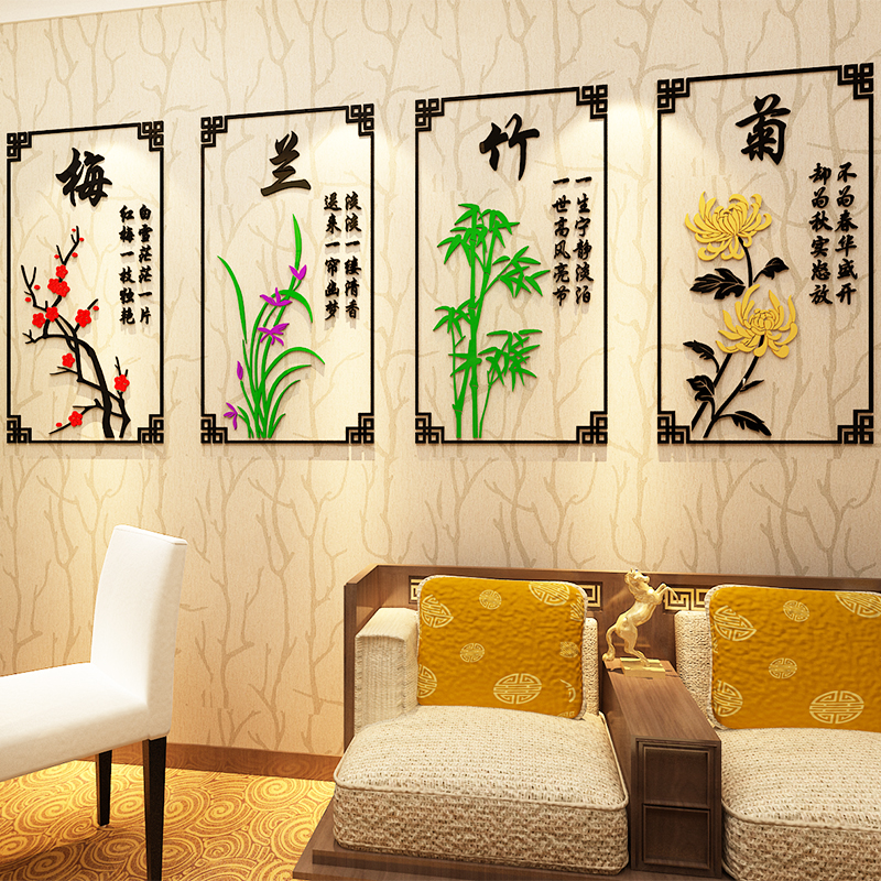 Plum orchid bamboo chrysanthemum calligraphy and painting wall stickers 3d three-dimensional acrylic living room decoration wall stickers tea house porch stickers self-adhesive