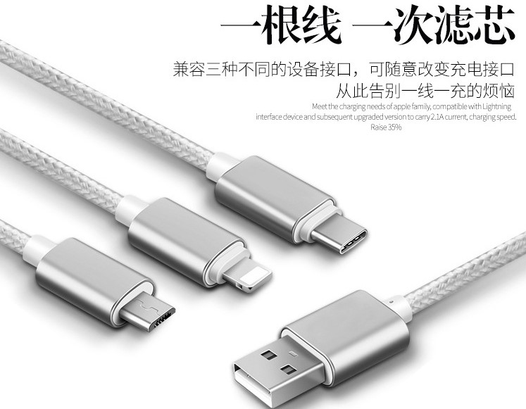 usb one drag three charging cable one point three suitable for Huawei Xiaomi Type-c Android Apple Android 3 in 1 mobile phone
