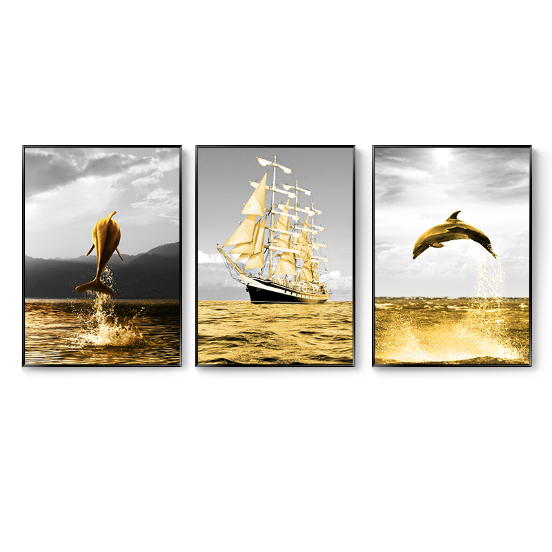 Light luxury living room decorative painting Nordic sofa background wall simple modern black and white wall painting mural atmospheric triple
