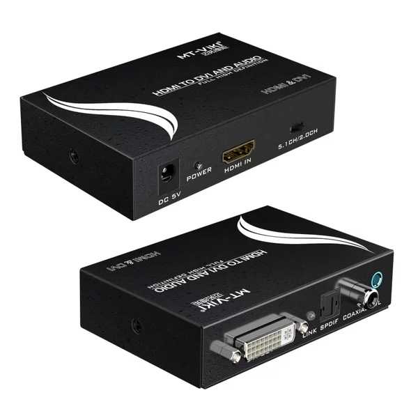 Maitrau MT-HDV13 HDMI-to-DVI converter with audio fiber XBOX PS4 connected to the DVI display