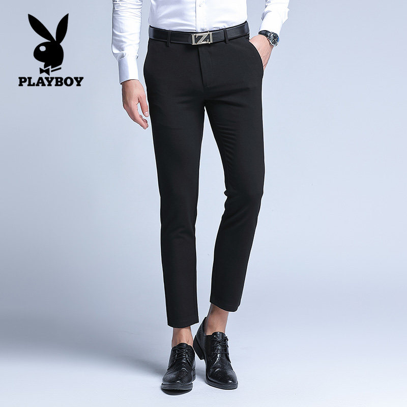 Playboy nine-point pants men's youth business men's Korean version of the trend of elastic feet casual pants summer trousers men