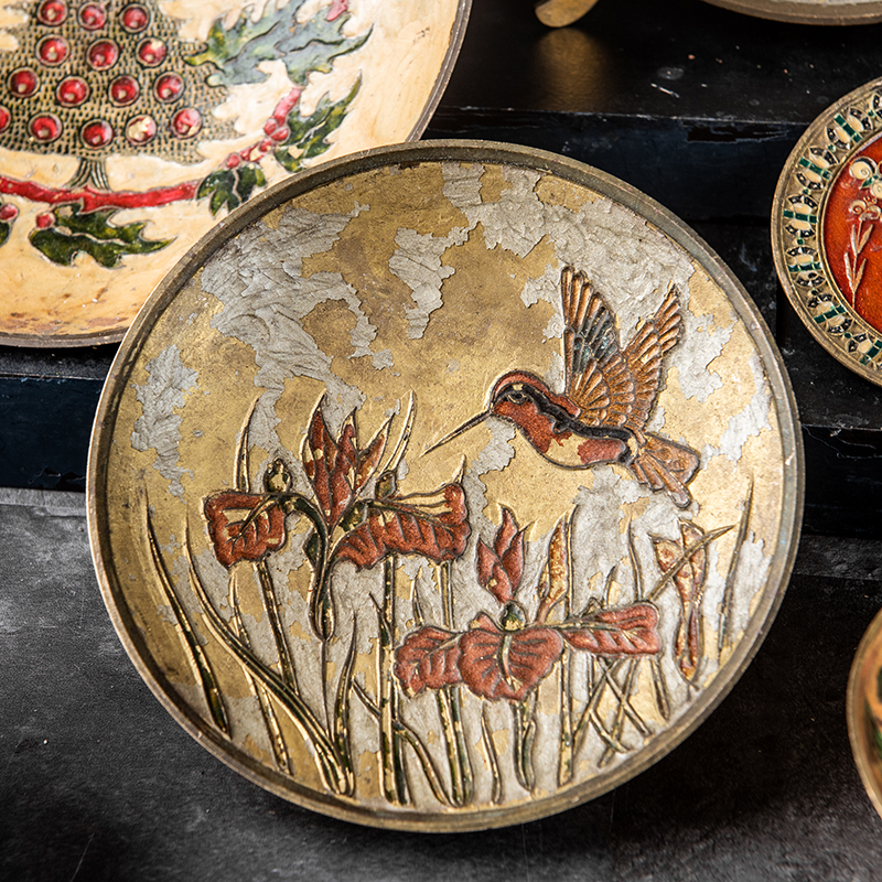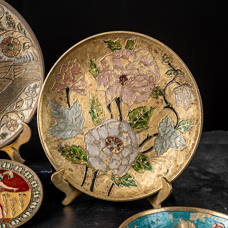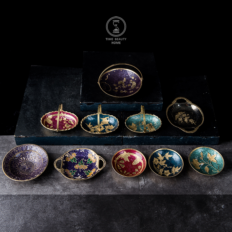 7 17 On the new European and American R group retro brass lacquer color bowls and plates old vintage ornaments Western antique soft clothing