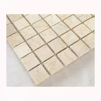 Beige stone mosaic wall stickers natural marble gold and blue bright bathroom powder room tile fish pool pool