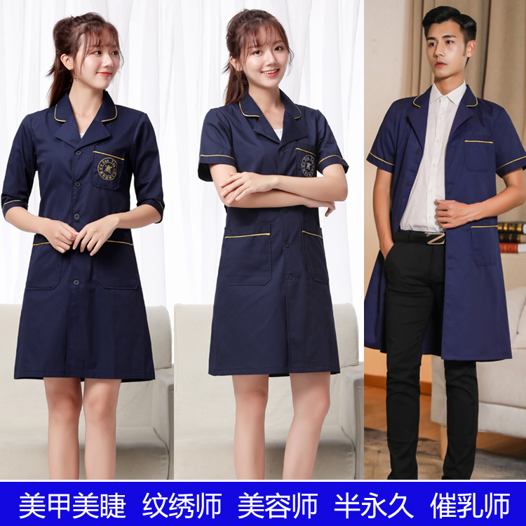 Korean version of the white coat semi-permanent beautician tattoo artist work clothes nurse clothes female doctor clothes pharmacy clothes short-sleeved summer