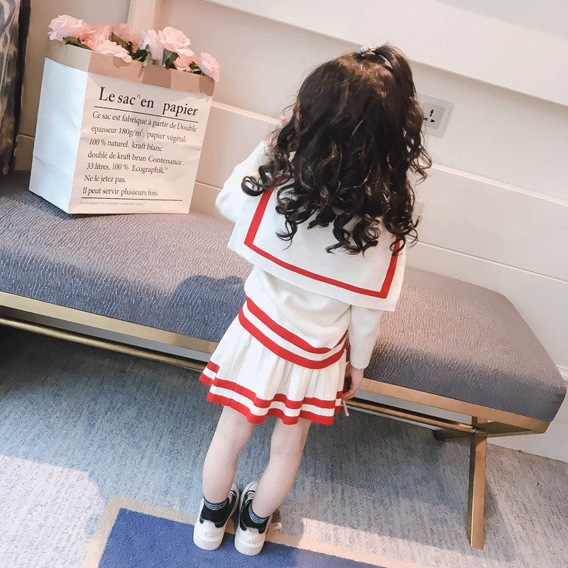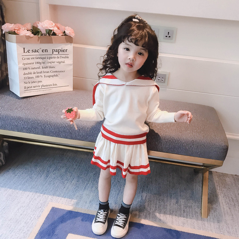 Girl Spring Autumn Dress New Women's Baby Suit Girl Net Red Suit Academy Wind Sweater Suit Korean Version of the Ocean