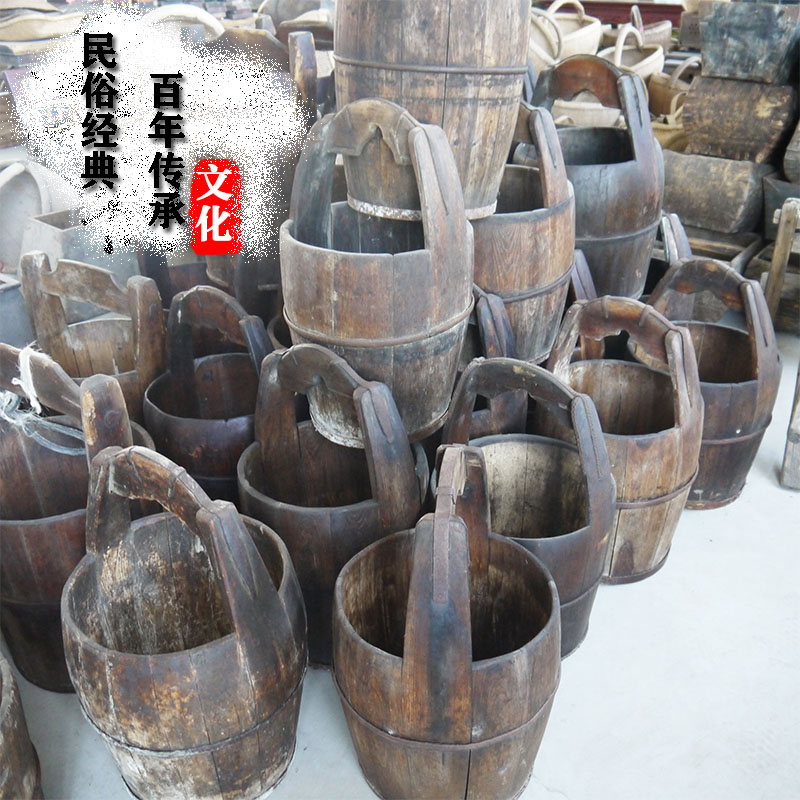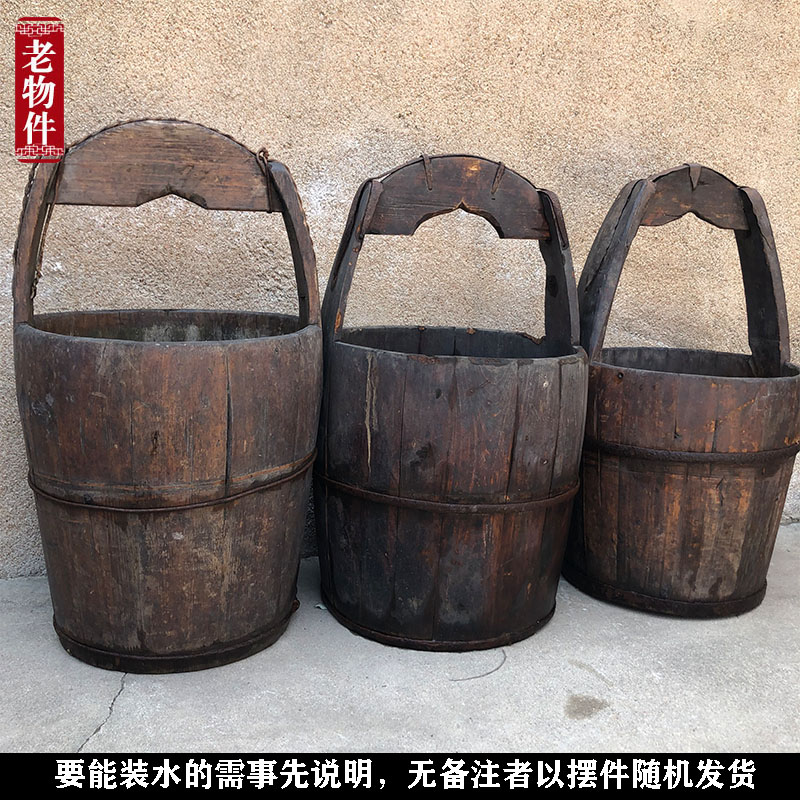 Old-fashioned wooden barrel 50s rural thrift folk nostalgia old object ornaments Ancient bucket agricultural tools Wooden bucket