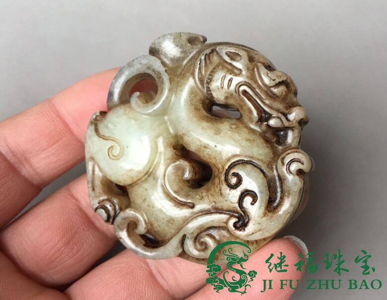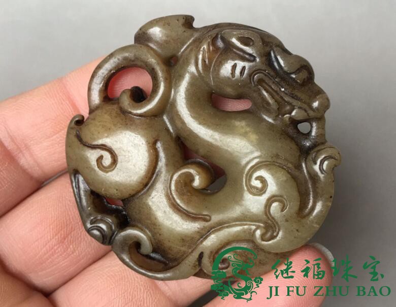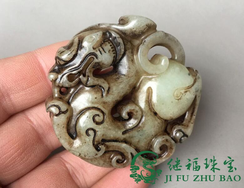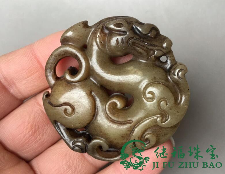 Ancient playing jade chore antique Ming and Qing imitation ancient dragon jade old Xiu jade leash Waist Hanging of the Ancient Jade Rui Beast Pendant