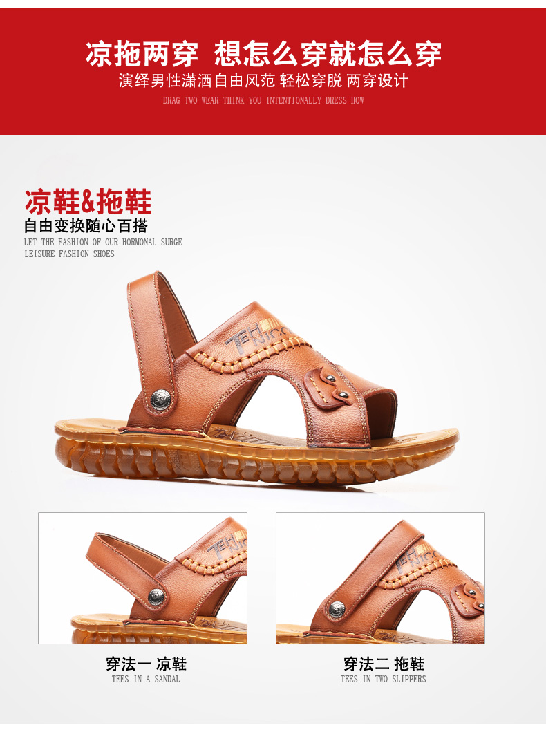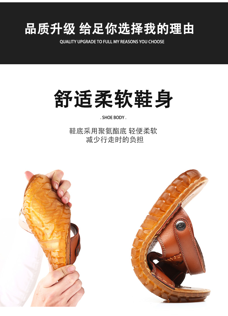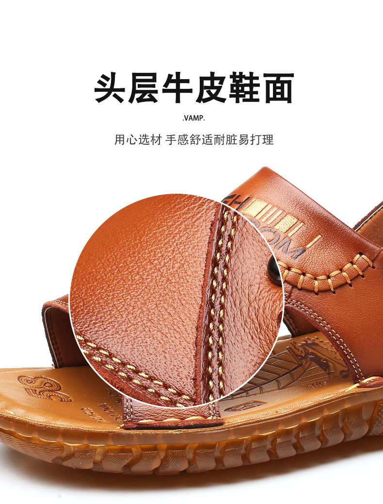 Leather on-line beef tendon bottom sandals men's beach shoes leather casual breathable dual-use sandals and slippers middle-aged non-slip