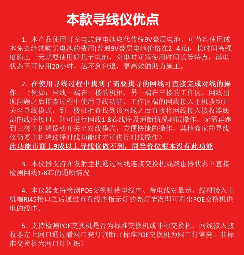 892 Anti - interference with lithium battery charge charge search 893 multi - grid wire breakpoint length test port flicker