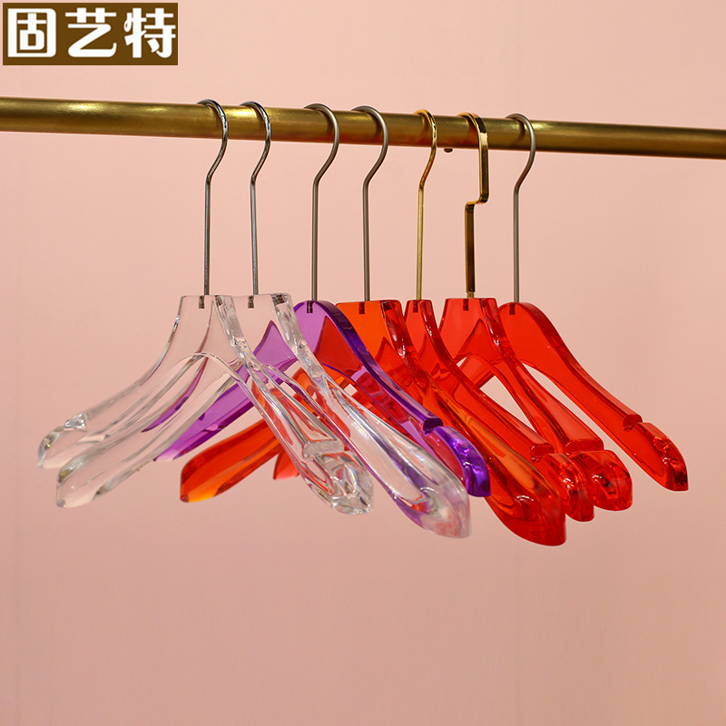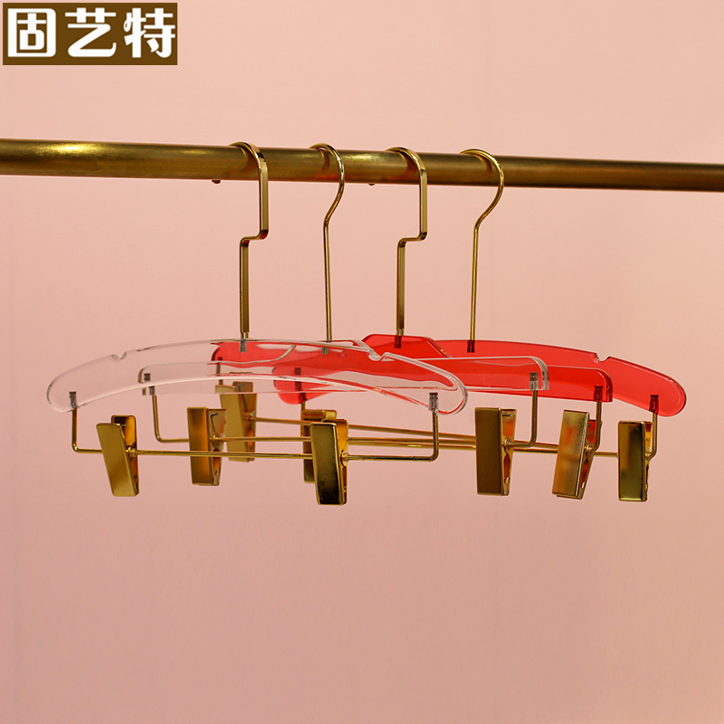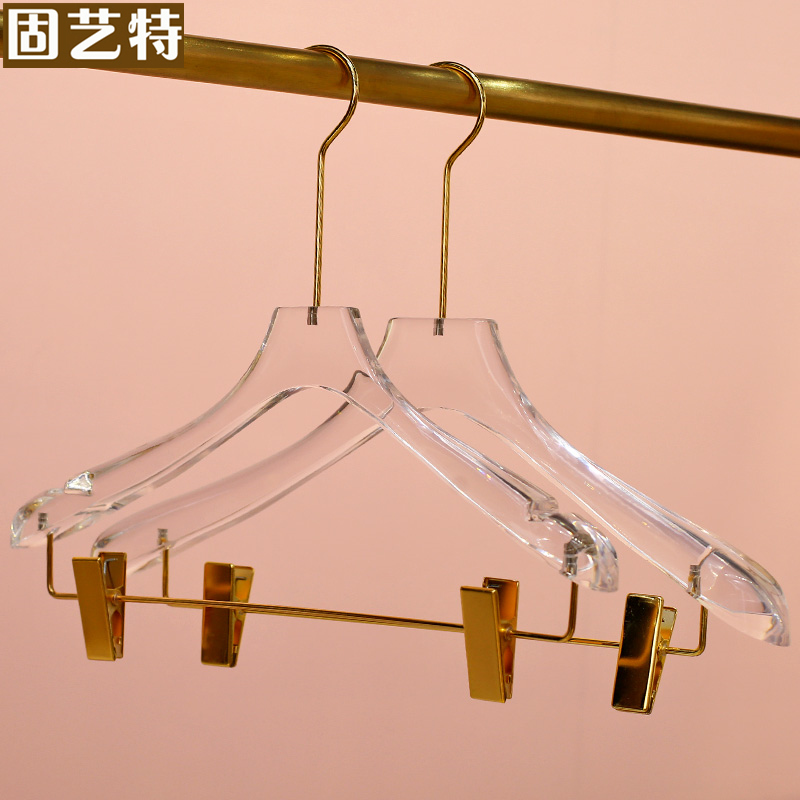 Curve clothing store Acrylic clothing rack high-end transparency and widening gold trace-free anti-slip bracket clamp