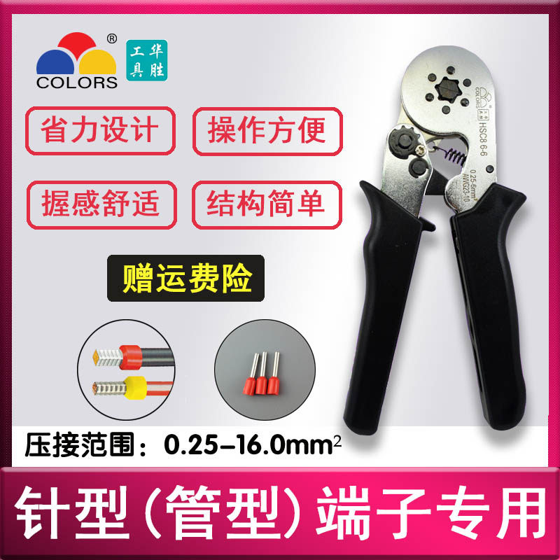 Huasheng tools Cold-pressed terminal pliers Crimping pliers Small electrical needle clamp pliers Needle-type tube-type terminal crimping pliers