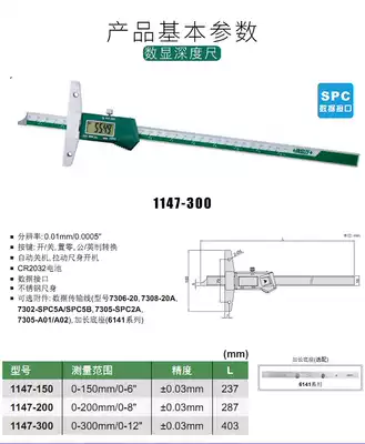 English insize digital display depth ruler 1147-150 0-150200300 can be lengthened base 0 01 Yingshi