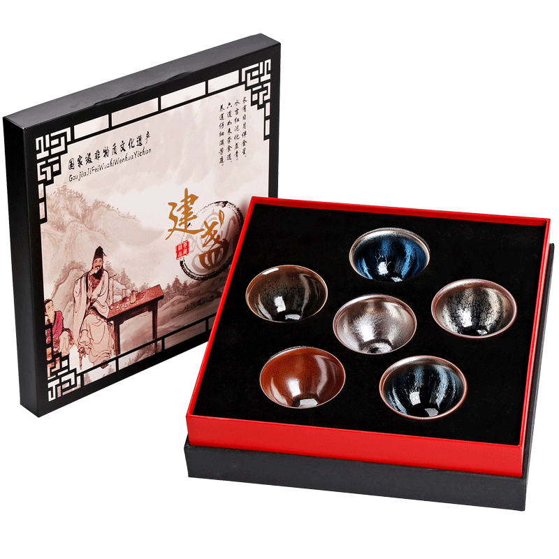 Jinchang has six-color cup Jianzhan gift box set