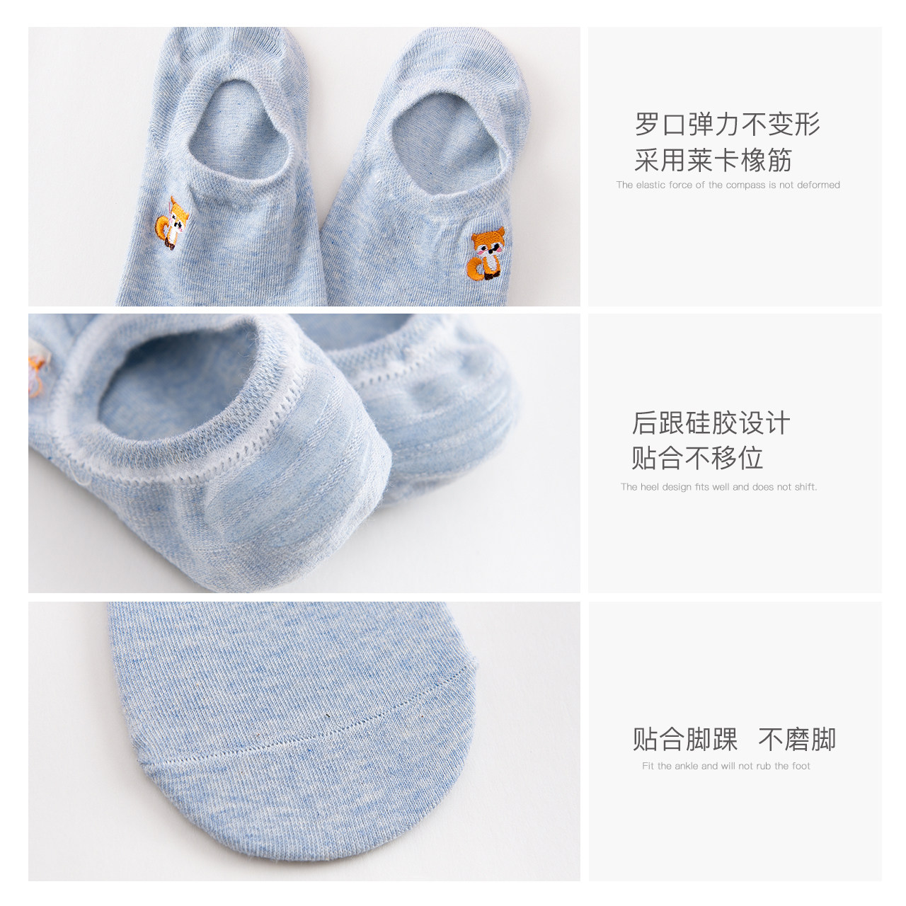 Solid color animal embroidered invisible socks 7 pairs of bags Solid color animal embroidered invisible socks 7 pairs