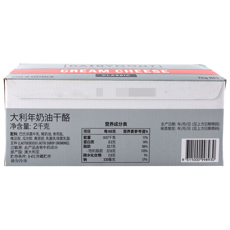 Italian Year Cream Cheese 2kg Australia imports cheese cheese Cheese Cake Baking raw materials Home
