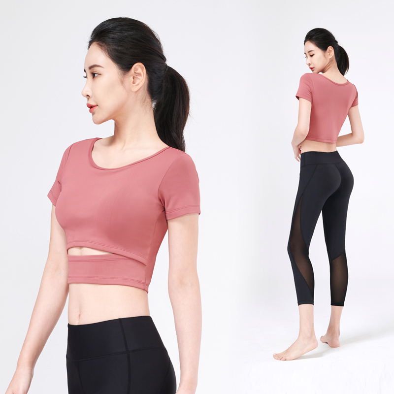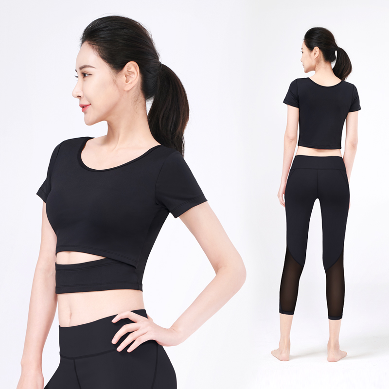 Net Red Yoga Suit Woman 2021 Spring Summer Short Sleeve Fitness Sports Conserve Speed Dry Thin Burn Short Dew Cord Dance Suit