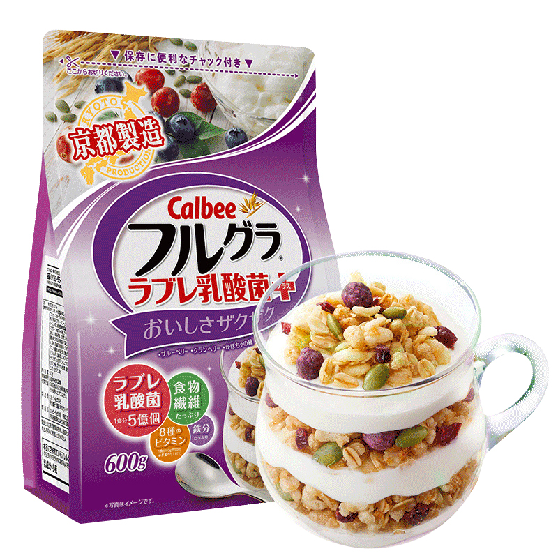 Japan Calbee fruit cereal Lactic acid bacteria flavor 600g Ready-to-eat brewing drink Nutritious breakfast meal replacement oatmeal