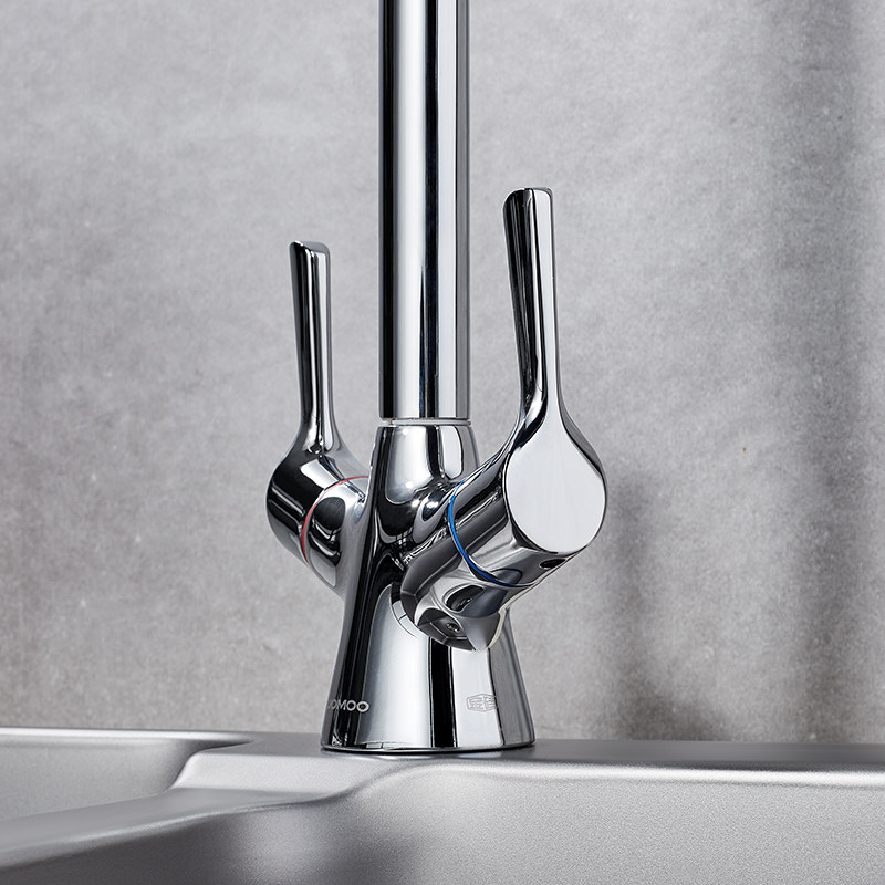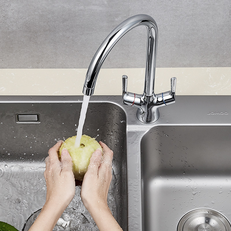 Jiumu kitchen faucet Stainless steel hot and cold kitchen sink faucet washing basin double handle faucet can be rotated