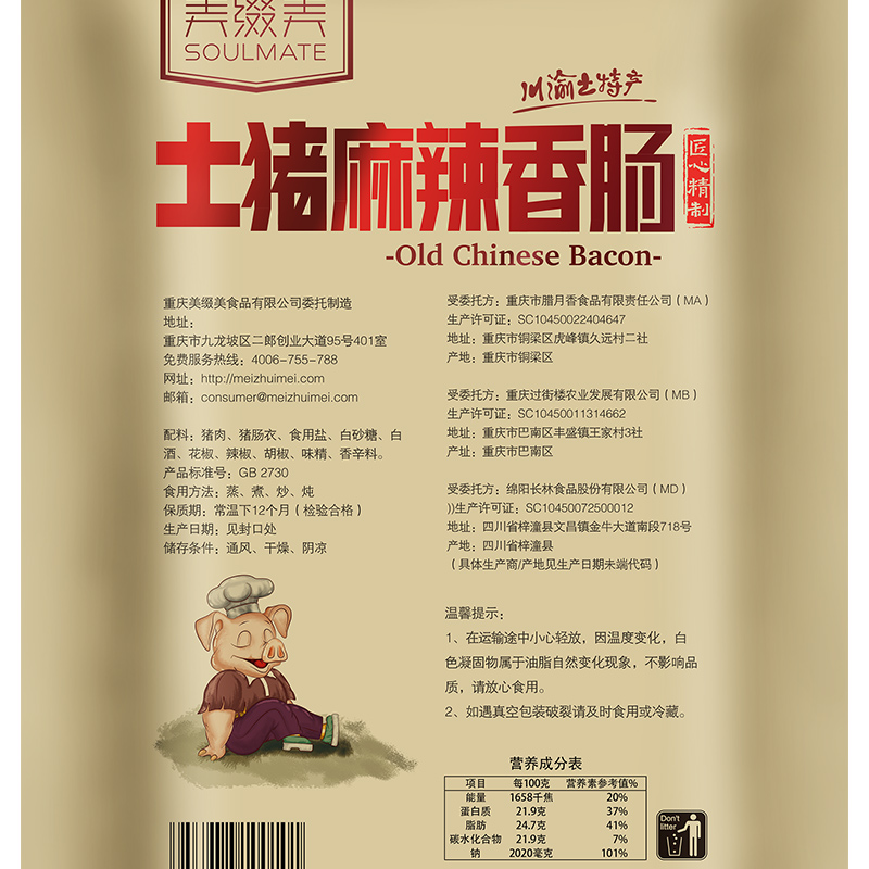 Meijie Meitu pork spicy sausage 250g Chongqing Sichuan specialty smoked meat farm-made Sichuan sausage bacon