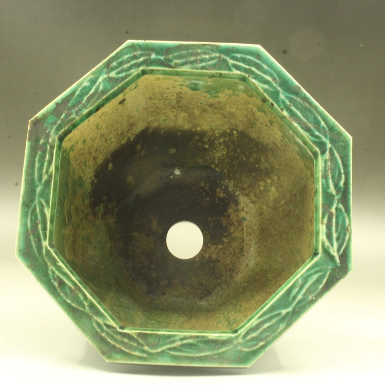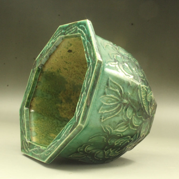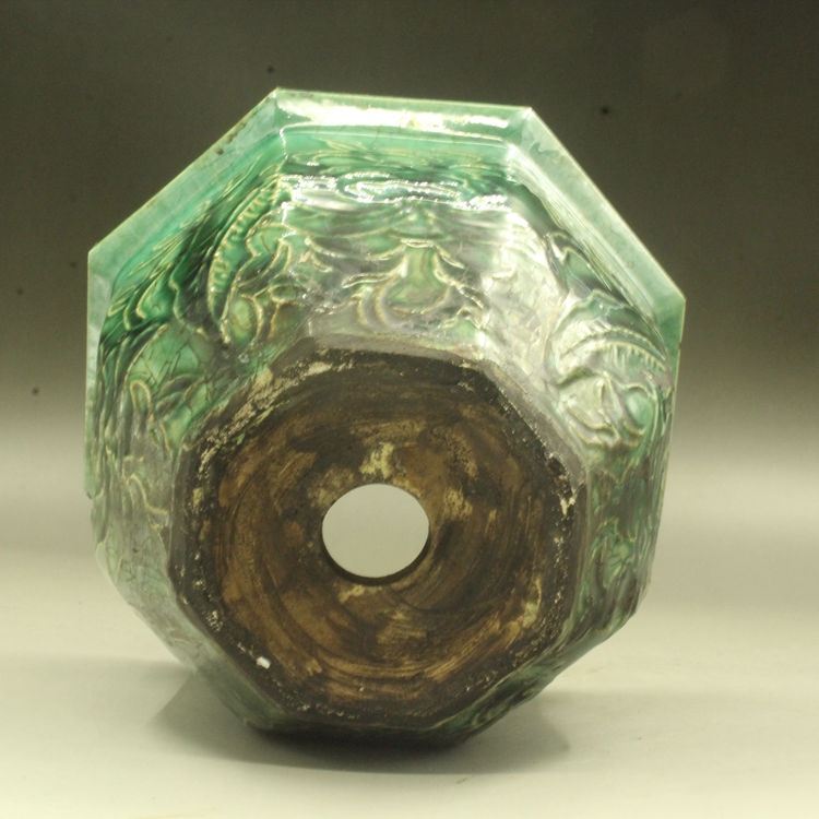 Qing Guangxu Green Glaze Bafang Succulent Flower Pot (Small) Antique Antique Porcelain Ornament Antique Porcelain Collection