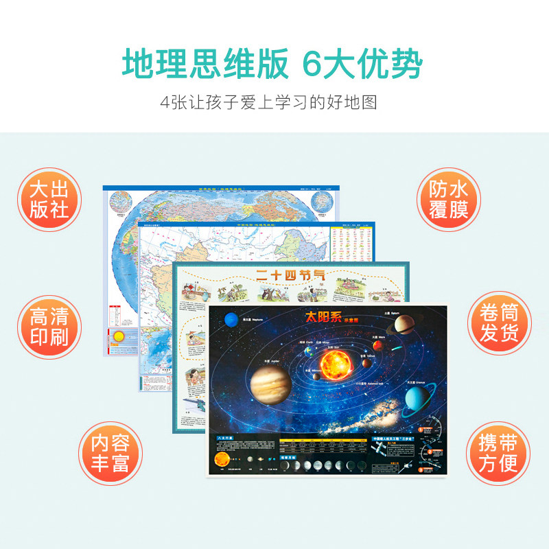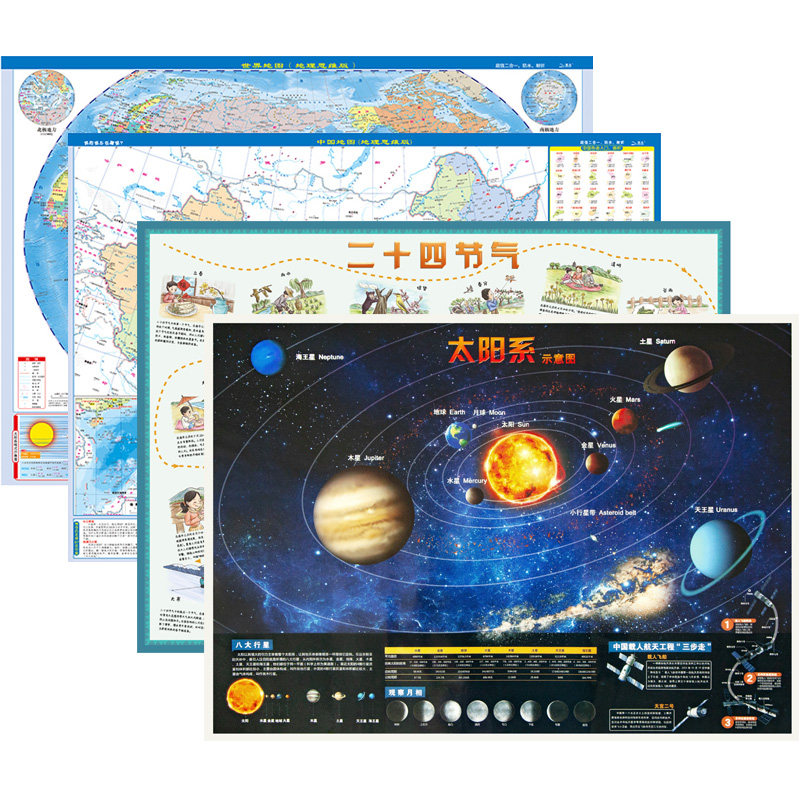 (4 in total) China map world map solar system map 24 solar terms 59 4cmx43cm student geography thinking version wandering earth to understand the solar terms of eight planets