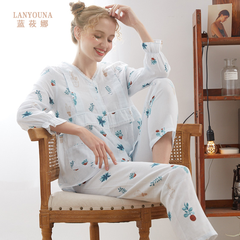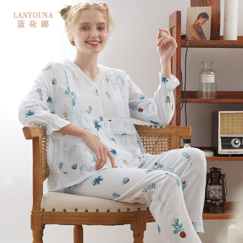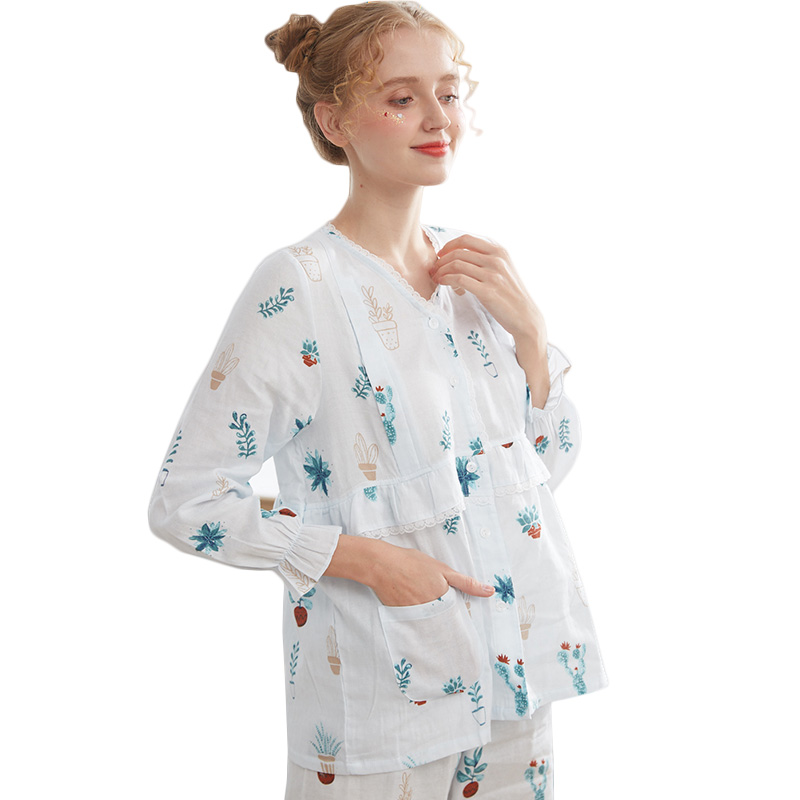 Confinement clothing summer thin section postpartum pure cotton gauze pregnant women breastfeeding pajamas female maternity breastfeeding suit sweat-absorbing and breathable