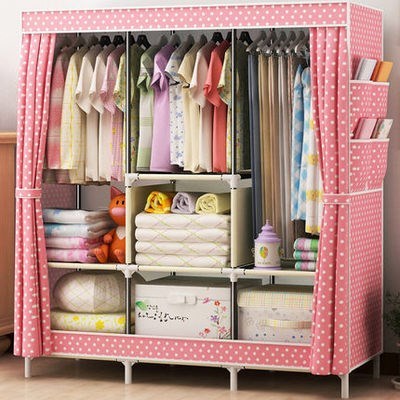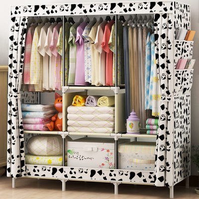 Cloth wardrobe steel pipe plus coarse reinforcement double home thickened steel frame assembled oxford cloth single simple cloth art cabinet