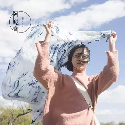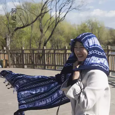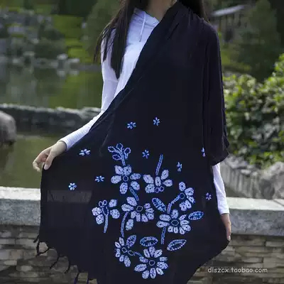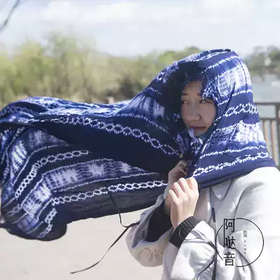 Original design tie-dyed blue dye scarf shawl non-heritage traditional fabric Deep Cotton handmade plant dyeing background cloth
