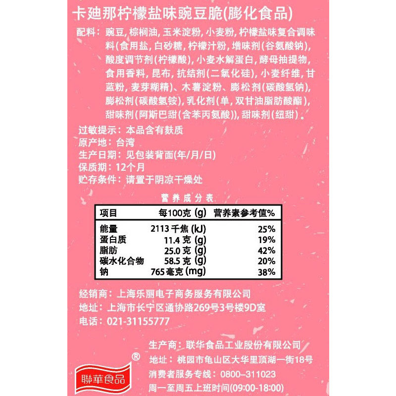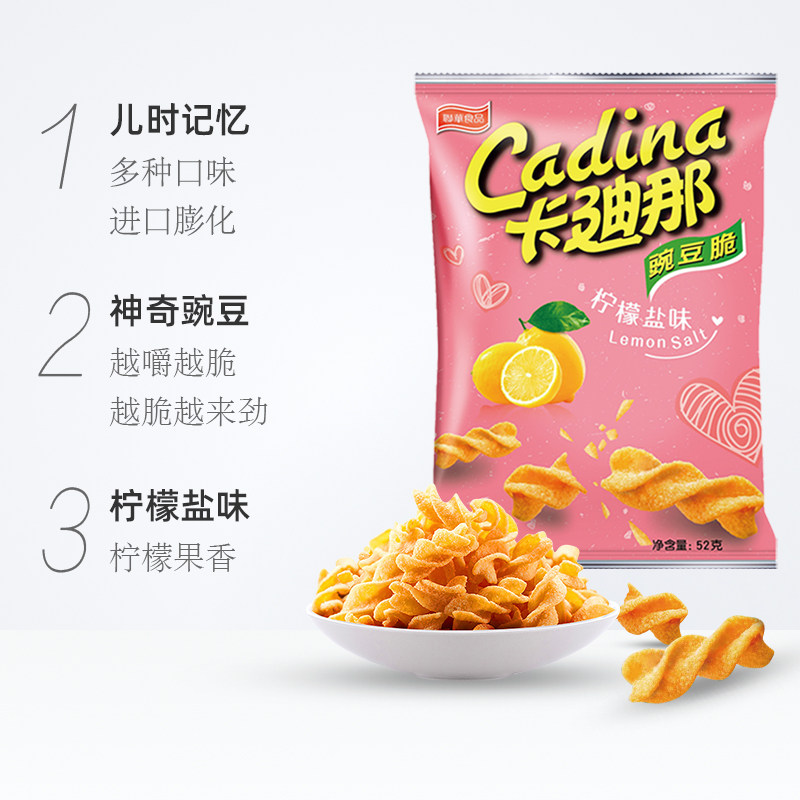 Cardina lemon salt pea crisp 52g*3 packs 8090 childhood nostalgic puffed snacks