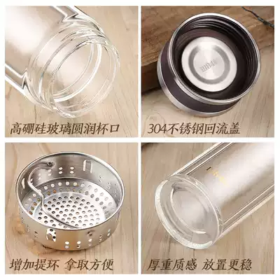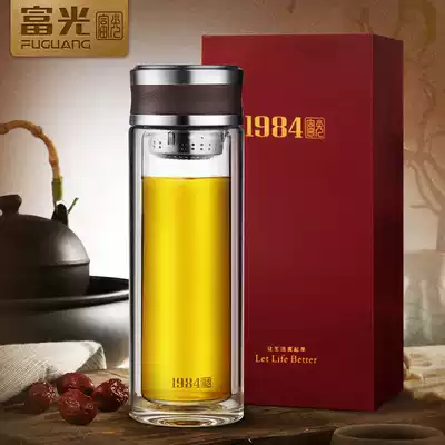 Fuguang double-layer glass with lid filter water cup Men's and women's heat-resistant tea cup Portable gift box Handy cup gift