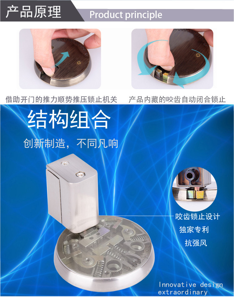Japanese original Loaded Import Same with lock machinery ground suction windproof door suction ground with strong magnetic free stiletto patent muted