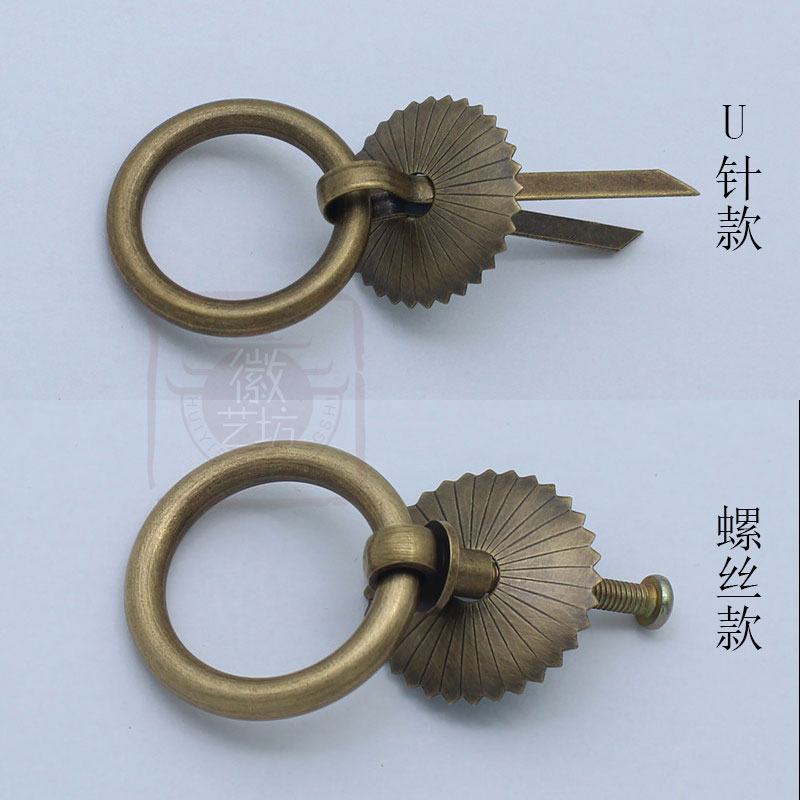 Chinese style cabinet door wardrobe whole cabinet drawer medicine cabinet small pull ring brief about single hole retro pure copper ring ancient bronze color handle