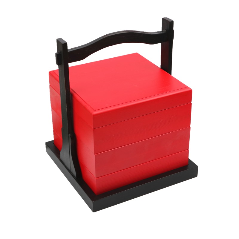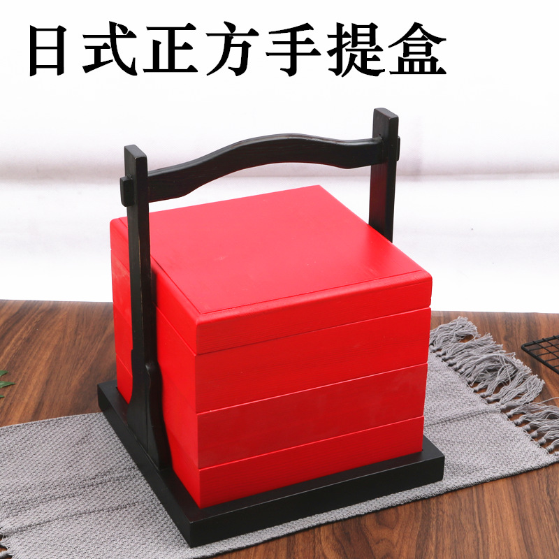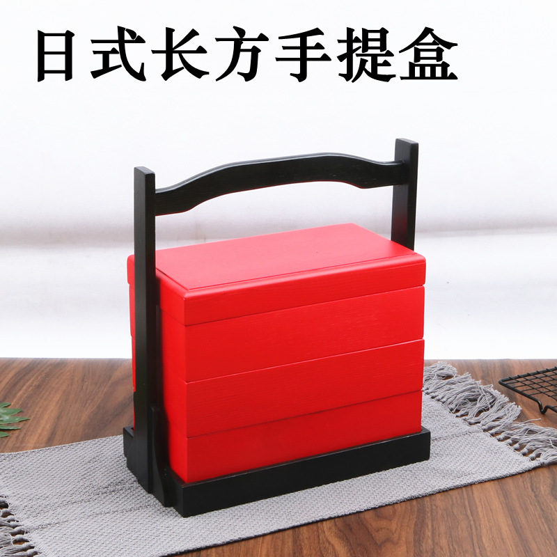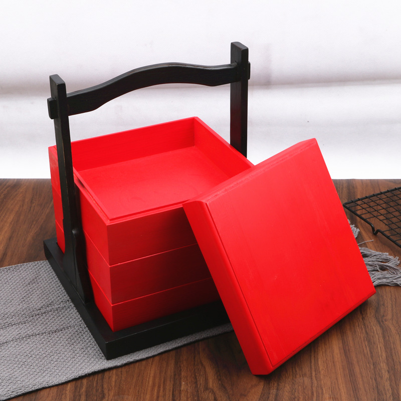 New red portable wooden box Three-layer sushi box Square rectangular red wooden box sashimi box Lunch box Wooden manufacturing