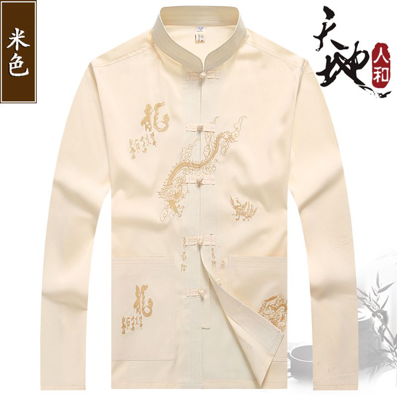 Tang suit men's long-sleeved middle-aged and elderly people spring and summer clothes Chinese style dad shirt Chinese style large size grandpa national style Hanfu