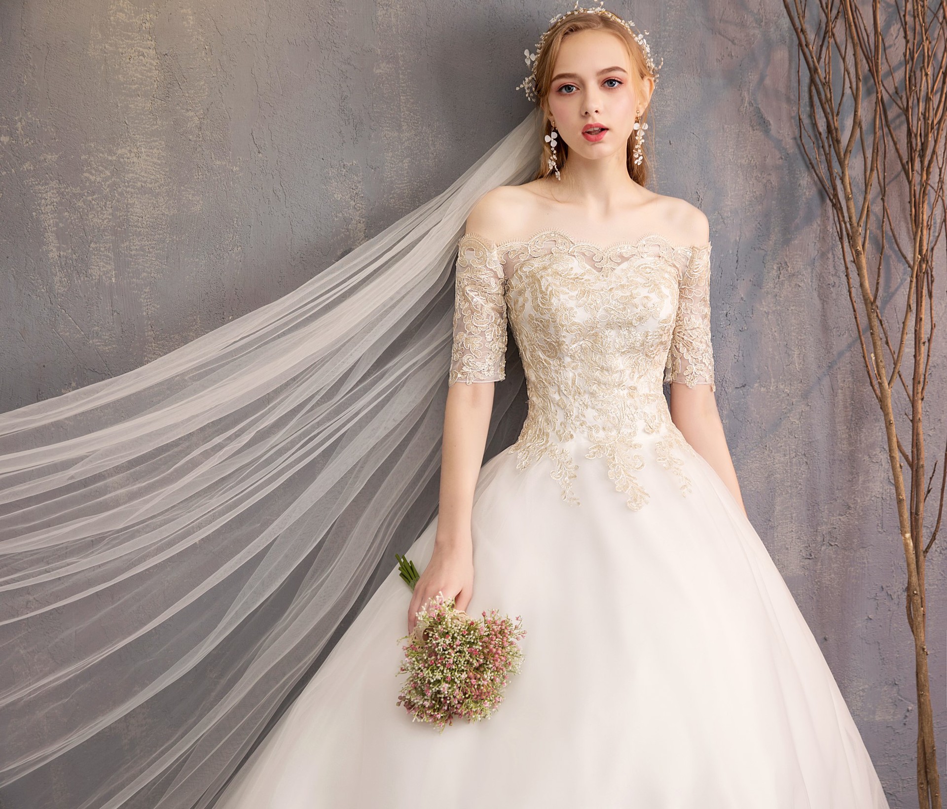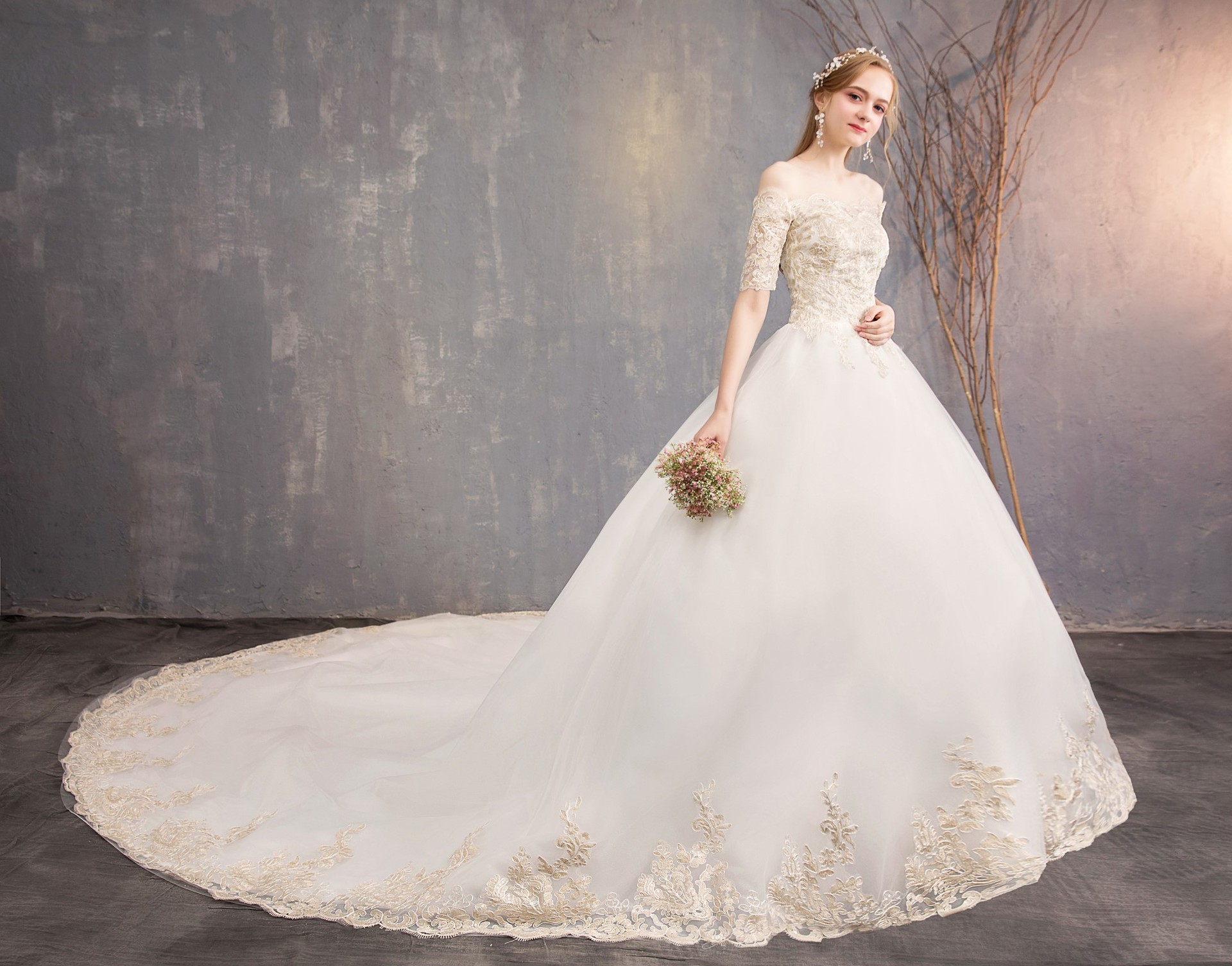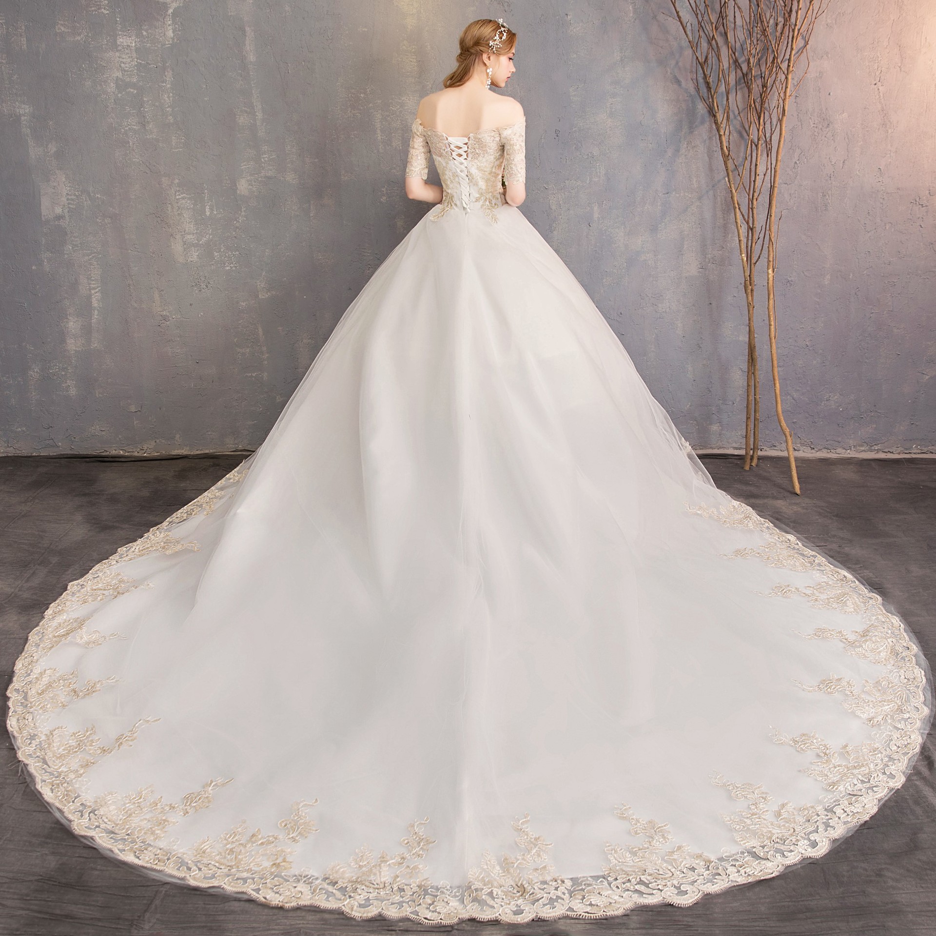 Six hi in the world bride 2021 spring new dream princess long trailing tail is thin one-shoulder palace wedding dress a