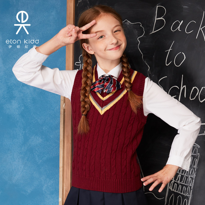 Eaton Gide school uniform boys and girls knitted vest primary and secondary school students hair vest spring and autumn 09B115 10B023