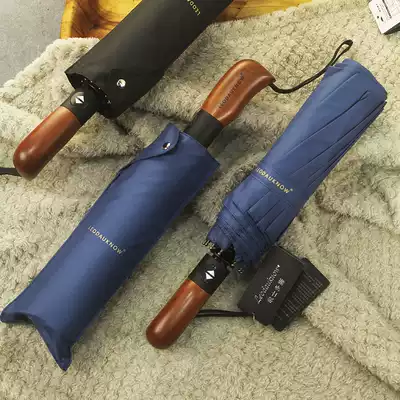 Ten bones strong 115CM windproof automatic three folding umbrella double oversized business plain men's umbrella